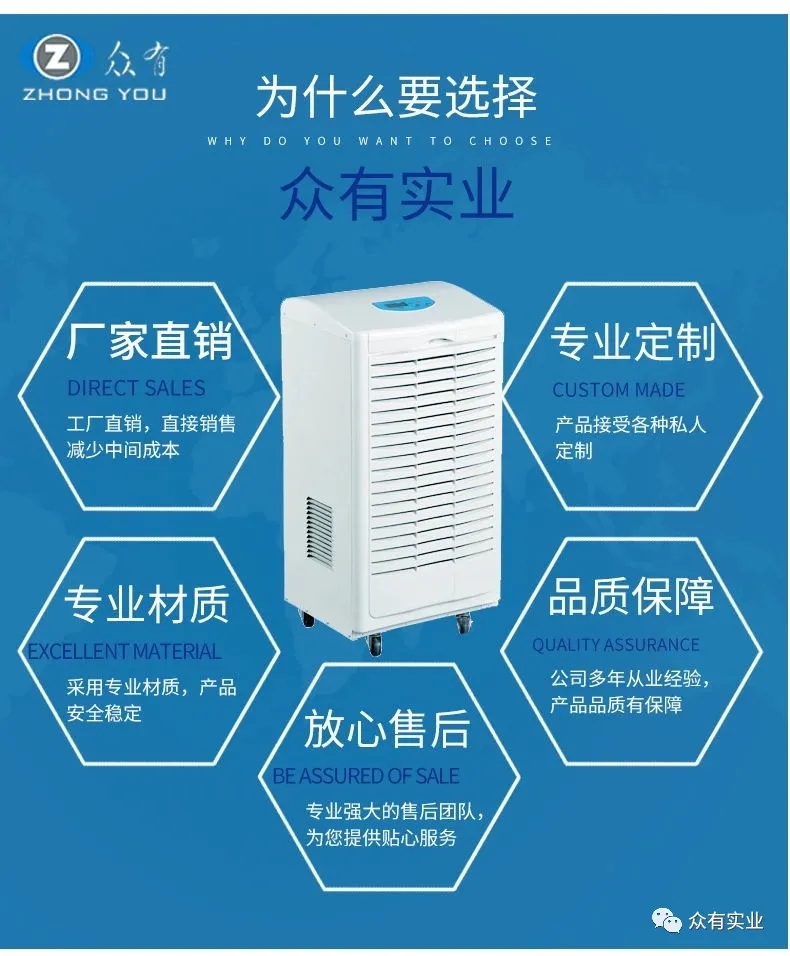 工業(yè)除濕機(jī)也分很多種,有壁掛式的、吊頂式的、新風(fēng)式的……一般企業(yè)需要根據(jù)自身的使用環(huán)境,以及使用需求,來明確應(yīng)該選擇什么樣的除濕機(jī)。例如對(duì)環(huán)境干燥程度較高的產(chǎn)品,并且工廠有臺(tái)階設(shè)計(jì)的,可以選擇大滾輪扶手式的工業(yè)除濕機(jī),除濕更方便。眾有工業(yè)除濕機(jī),擁有25cm特大滾輪扶手,可以輕松翻越臺(tái)階,配置進(jìn)口LG品牌壓縮機(jī),幫助工廠急速除濕。