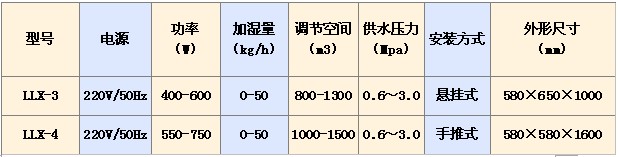 加濕器的工作水壓為 0.6-3.0MPa, 加濕器所需要的水源為潔凈的自來水 ; 現場需提供 DN15 的供水管和 電源為 220V/50HZ 的三芯插座 , 水源和電源均需引到距離加濕器安裝位置
