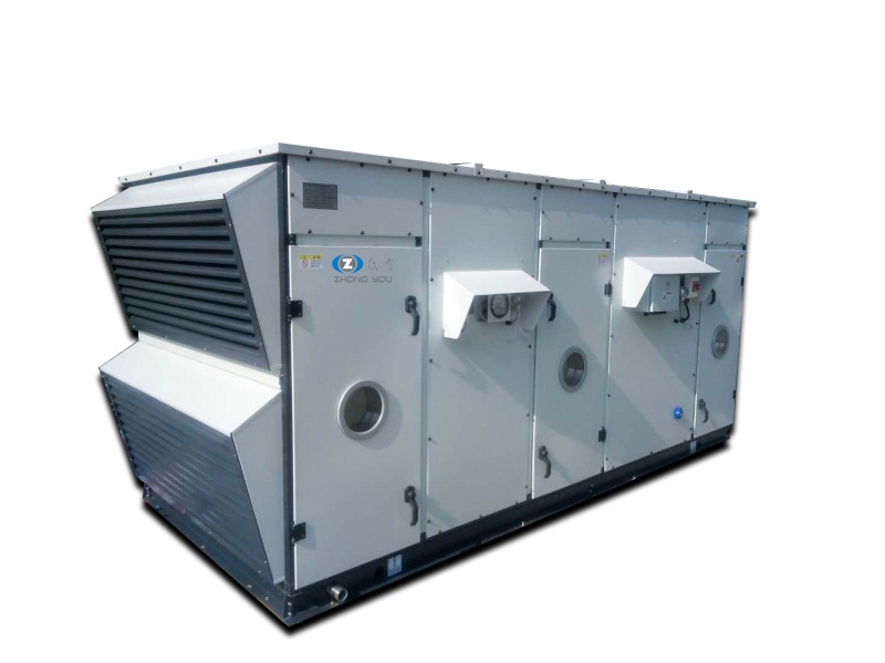 屋頂式空調機組是一種大、中型單元整體式機組,由壓縮冷凝段、蒸發過濾段、送風段三段組成。按功能可分為:單冷型、電加熱型、恒溫恒濕型、恒溫恒濕潔凈型、熱泵型等類型。