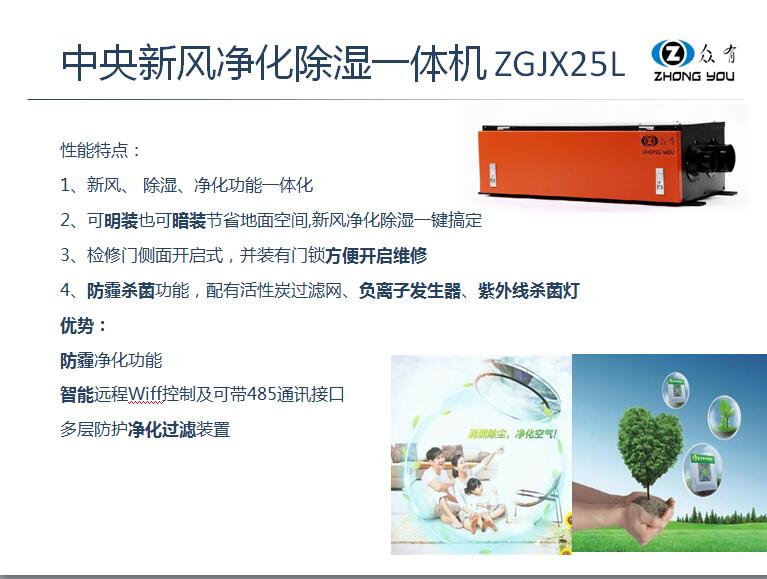 全新設計理念集新風、凈化、除濕功能模塊一體化;