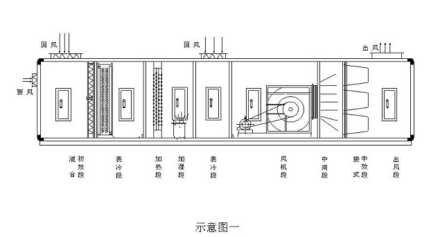 組合式空調(diào)機(jī)組是由各種空氣處理功能段組裝而成的一種空氣處理設(shè)備。適用于阻力大于100Pa的空調(diào)系統(tǒng)。機(jī)組空氣處理功能段有空氣混合、均流、過濾、冷卻、一次和二次加熱、去濕、加濕、送風(fēng)機(jī)、回風(fēng)機(jī)、噴水、消聲、熱回收等單元體。